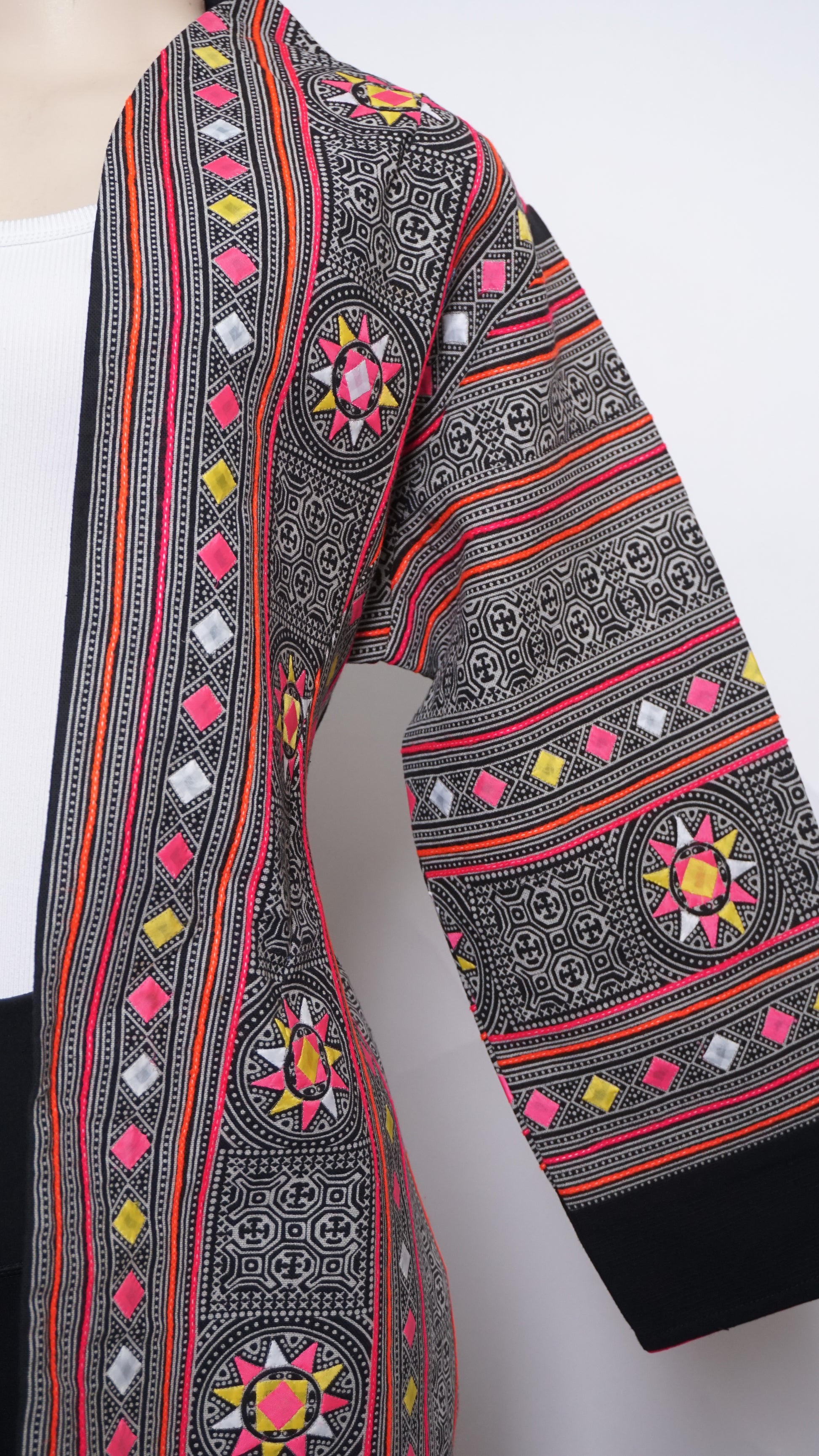 - Handmade/craft patterns/black cotton base with beeswax designs