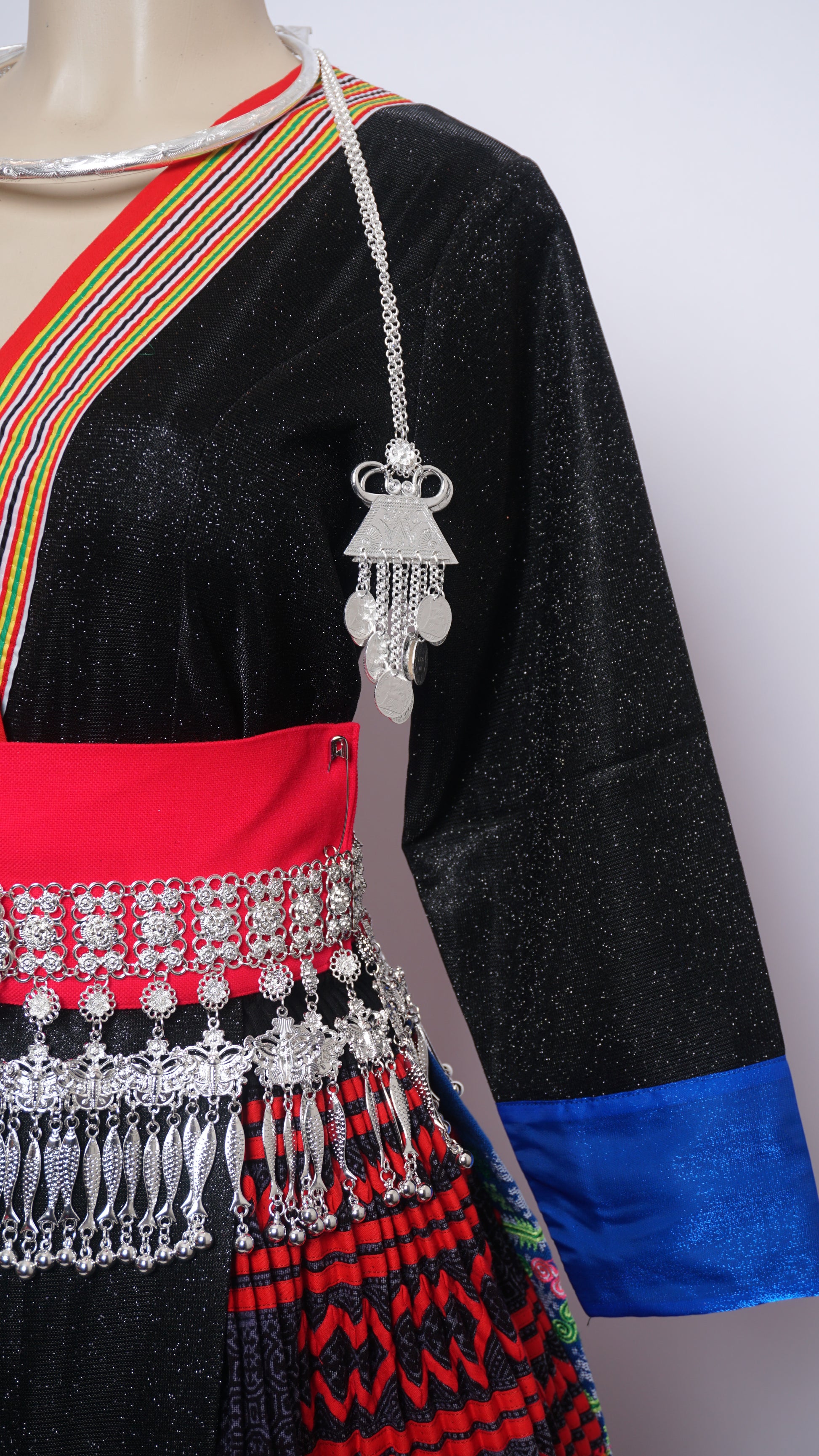 Product Includes: Shirt & Sev only | Size options are by chest circumference | Shirt Length: 23.5" (shoulder to hem) | Sleeve Length: 19" (shoulder to wrist) | Wrist Width: 4-4.5” | Sev Length & Width: 29-30” long, 10" wide | Material: Handmade pajntaub pattern with glitter black fabric